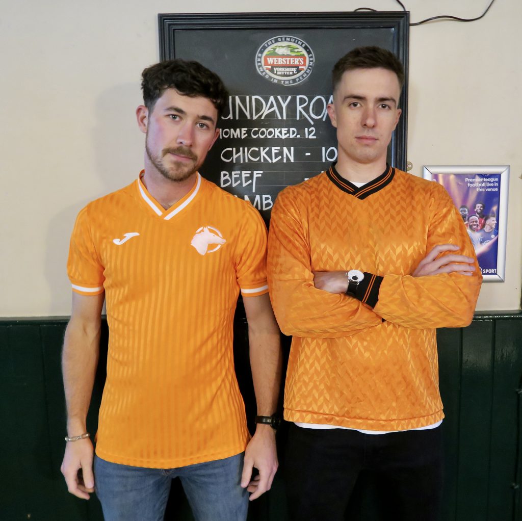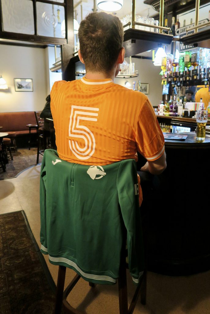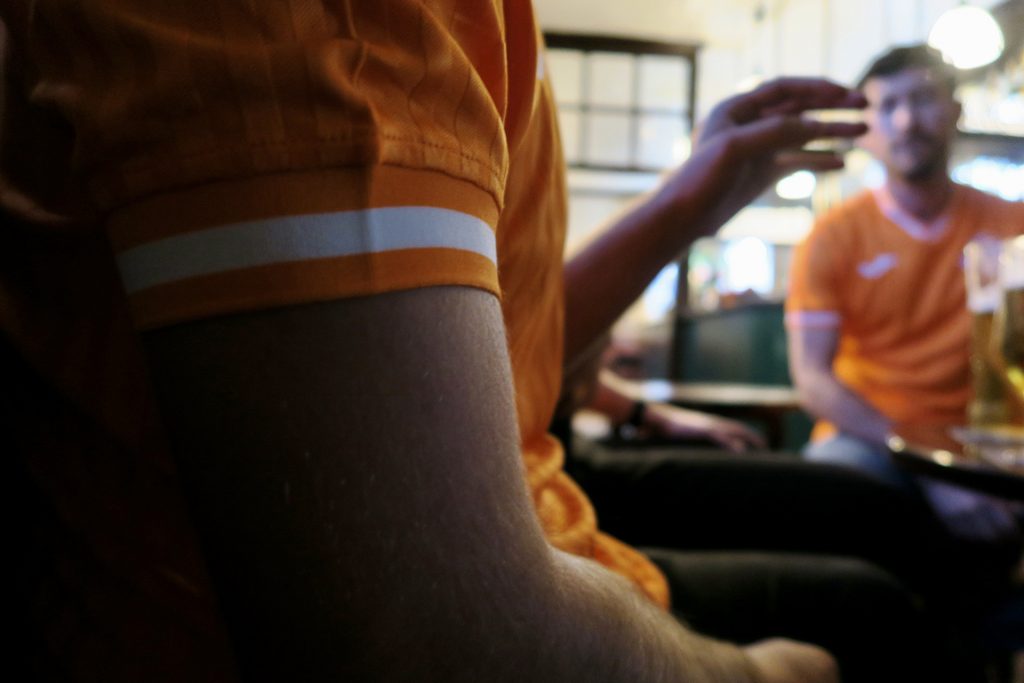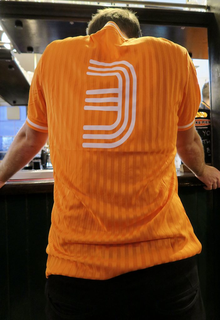 Subtle vertical striping on the body offers a slimming look for the club’s more rotund members and takes direct inspiration from the 1982 Dutch home shirt. An embroidered white Dancing Brave on the shirt’s breast is complemented by stylish white shorts sleeve cuffs and neat v-neck collar and offers a tip of the hat to previous Mary’s home shirts of the mid-1990s while also drawing upon the infamous geometric kit worn to success by the Oranje in 1988.